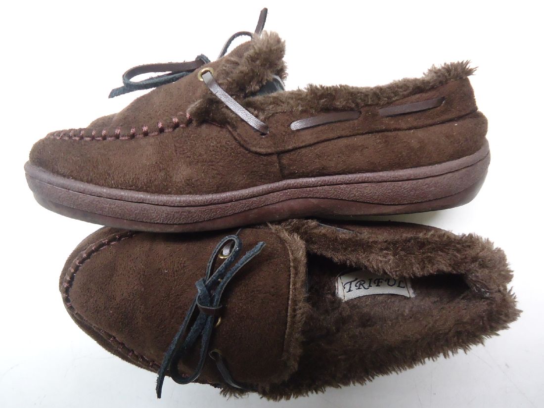 【中古】TRIFUL■スエード リボン モカシンシューズ■23.0cm〜23.5cm程度■ダークブラウン■もこもこで可愛いフォルムのシューズ☆