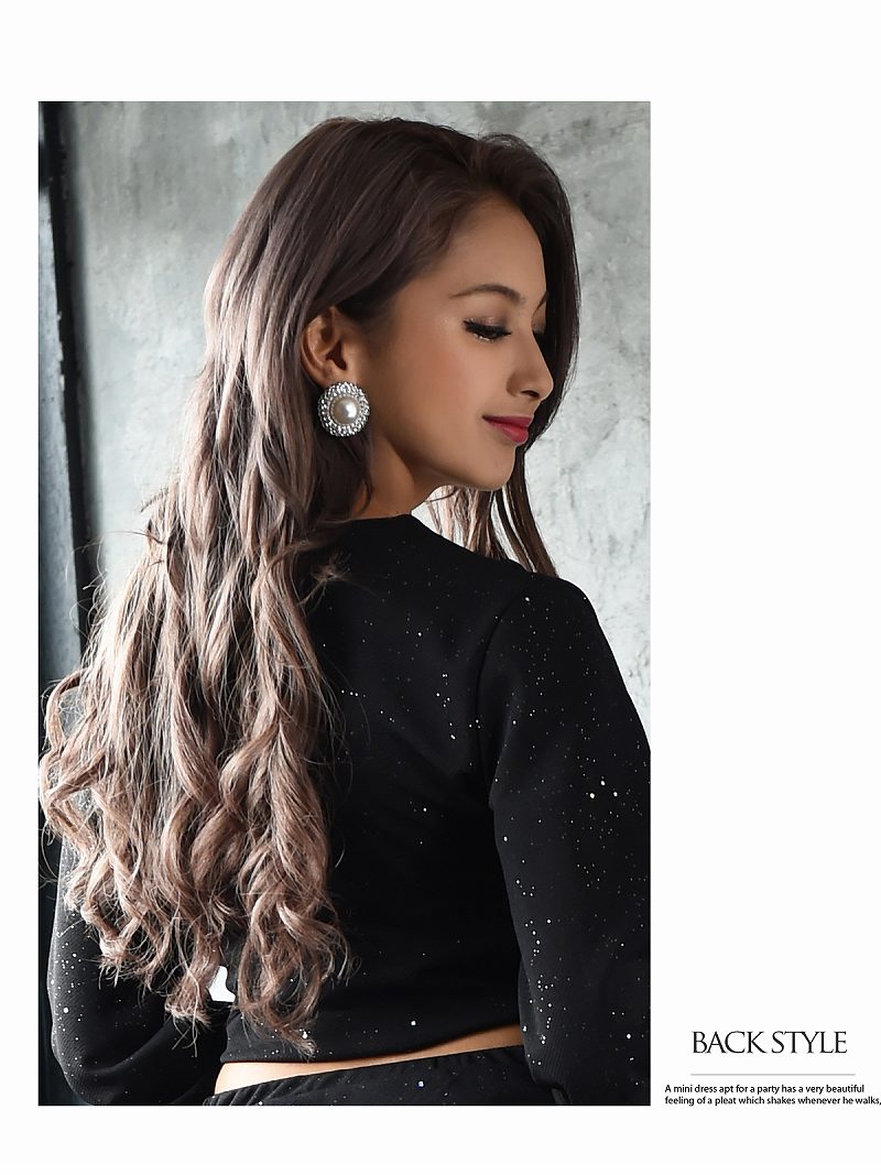 しっかり生地の色っぽキラキラ黒キャバドレスはトップスがショート丈でお腹魅せSexyなタイトセットアップドレス♪