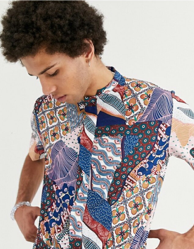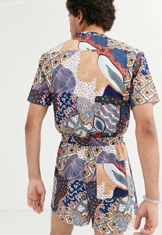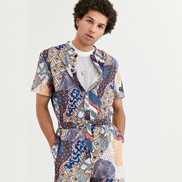 ASOS asos エイソス MADE IN KENYA プリント ロンパース パッチワーク プリント 20代 30代 40代 ファッション コーディネート オシャレ カジュアル メンズ