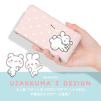 スマホケース 手帳型 ベルトなし ケース 全機種対応 スマホカバー 手帳型ケース 手帳 ケース 携帯ケース 携帯カバー LINE Musikyoto うさっくま LINEスタンプ イラスト おしゃれ かわいい 合皮 大人 可愛い 女子 スマートフォンケース デザイン手帳 【グローバル】